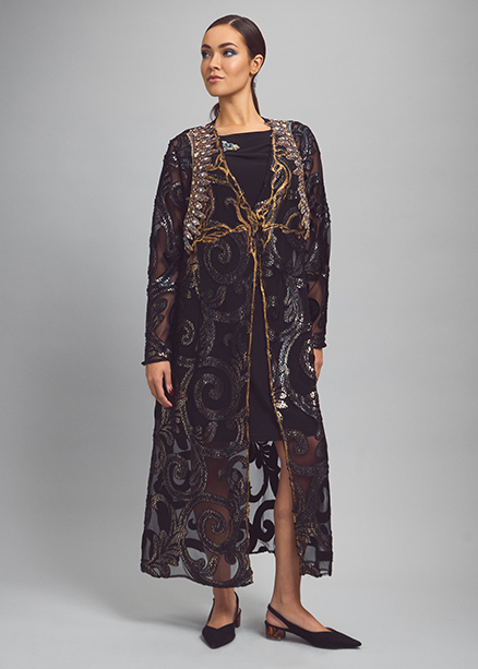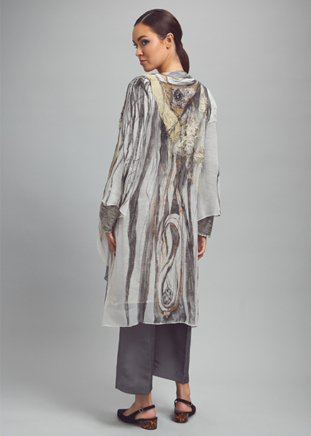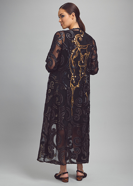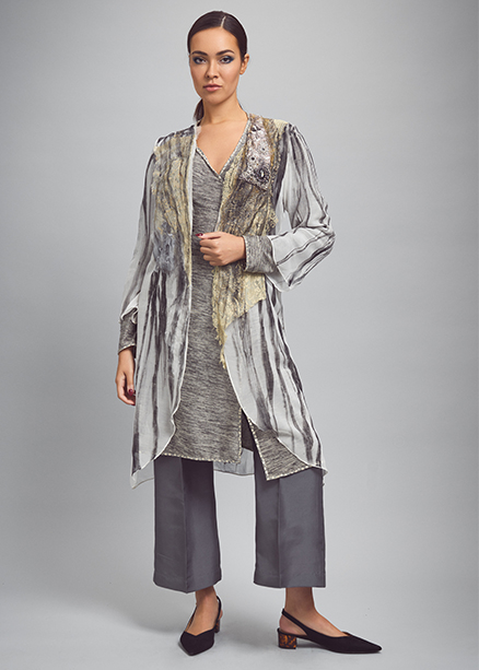 Introducing the new collection featuring an eclectic mix of daily and formal wear in pure fibers of silk, velvet, leather and suede with recycled knits and lace, digital prints and hand painted pieces, metallic embroideries with semi precious stones for beautiful, classic looks.